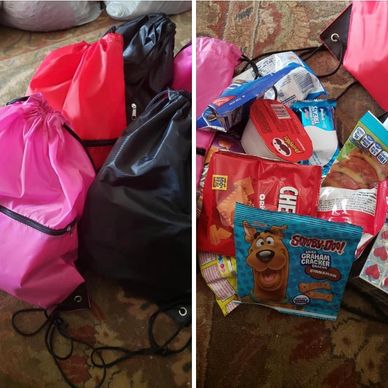 Weekend/Vacation bags allow children to receive food to supplement the food they miss out on when school is closed. Each bag should be a cinch bag so it doesn't look like they are receiving necessities they can't afford.